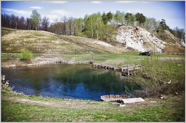 Около озера возвышаются небольшие, но красивые известняковые скалы.